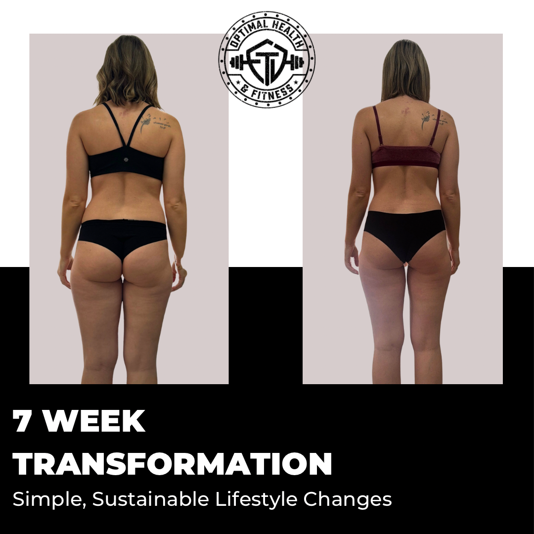 Huge shoutout to our girl Lauren for the AWESOME transformation in just SEVEN weeks! Lauren is a busy mom who is now in the 120’s for the first time since before her firstborn! She’s down almost 10lbs but as always, body comp and how we feel >> any number on the scale! Lauren stayed consistent through social events and all, AND we prioritized 4 strength training workouts per week 💪 Progressive overload and daily light movement is one hell of a fat loss combination when your diet is on point! 🎯